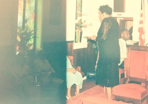 Mama, presenting and/or preparing to sing something to the Mother’s Board in church